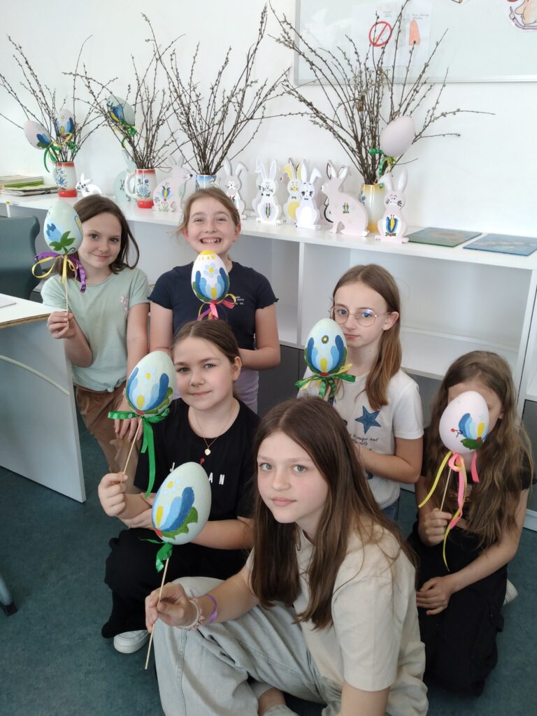 Z okazji Świąt Wielkanocnych uczniowie klas IV–VI wzięli udział w wyjątkowych warsztatach artystycznych, które odbyły się podczas lekcji języka kaszubskiego. Z ogromnym zaangażowaniem i radością tworzyli wielkanocne ozdoby, łącząc świąteczny klimat z piękną tradycją kaszubską.
