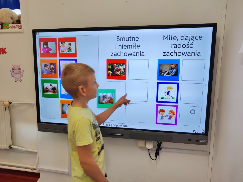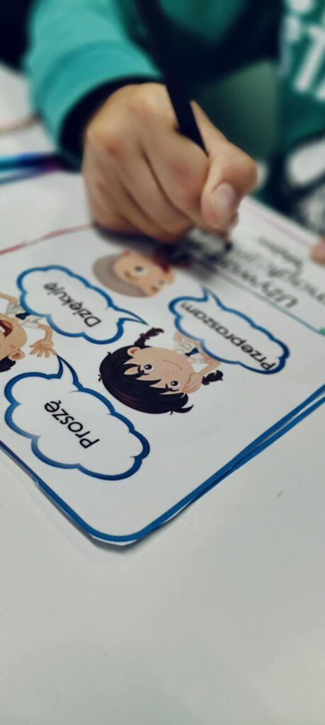 Zajęcia logopedyczne skupiły się na pracy nad komunikacją oraz umiejętnością wyrażania pozytywnych emocji. Jeden z przeprowadzonych modułów to: Komplementy – „Powiedz coś miłego”. Zajęcia pomagały budować przyjazną atmosferę, wzmacniać samoocenę i rozwijać umiejętność wyrażania uznania wobec innych.
