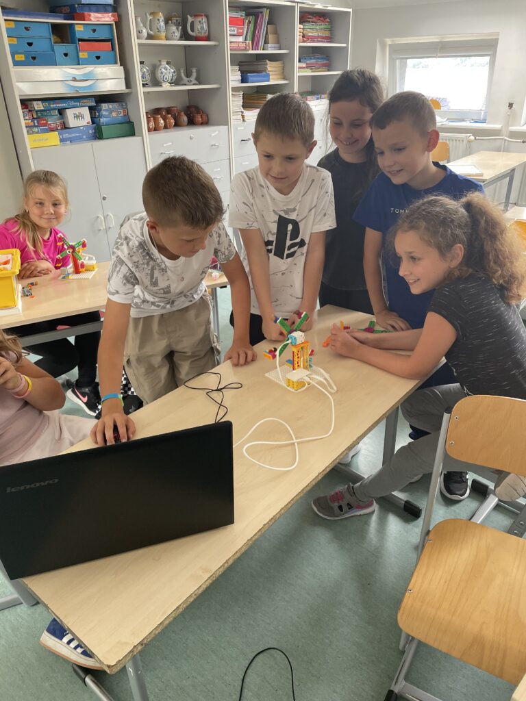 Warsztaty z robotyki obejmowały podstawy budowania robotów i programowania zgodnie z instrukcjami. Uczniowie uczyli się logicznego myślenia, współpracy w zespole oraz kreatywnego rozwiązywania problemów. Zajęcia cieszyły się dużym zainteresowaniem — powstały pierwsze prototypy, które mogliśmy przetestować na szkolnym torze.