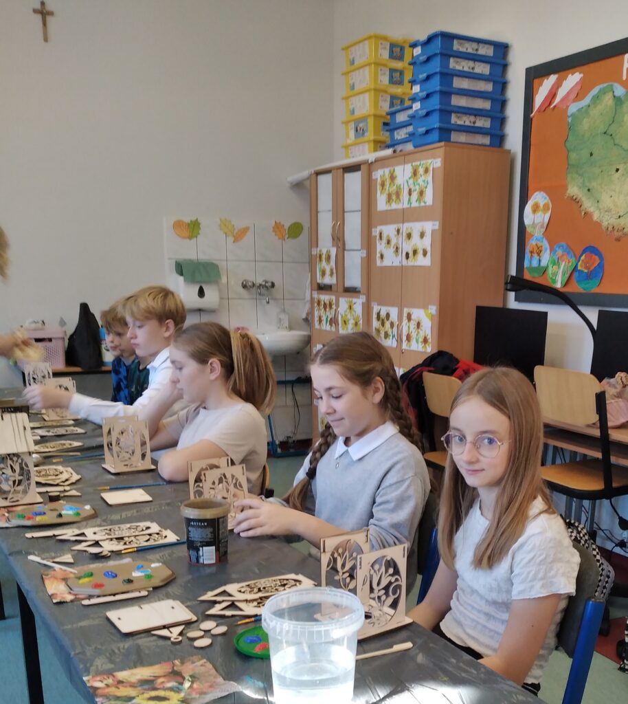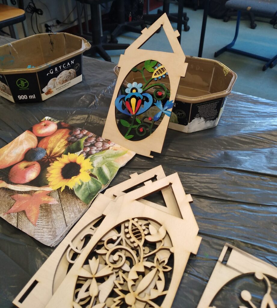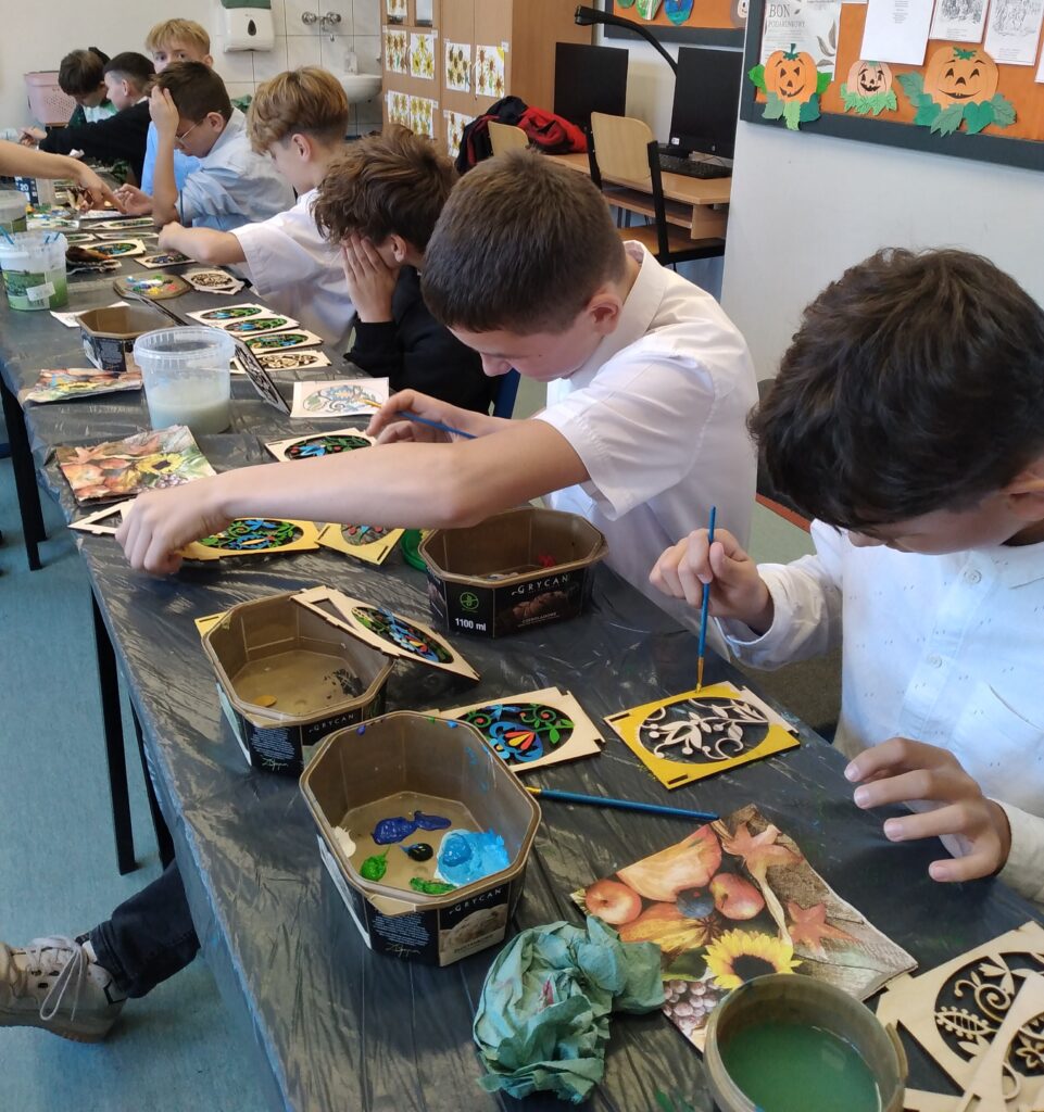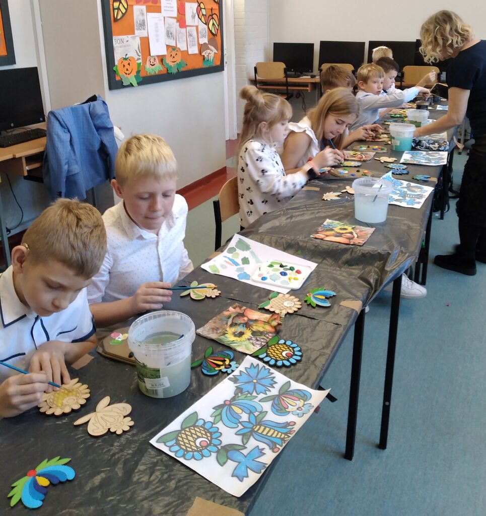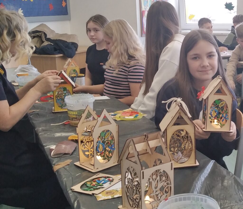 W naszej szkole odbyły się wyjątkowe warsztaty przygotowane dla uczniów uczęszczających na lekcje języka kaszubskiego. Podczas zajęć uczniowie poznawali technikę malowania i cieniowania kaszubskich kwiatów, a następnie składali drewniane elementy, tworząc własne lampiony z tealightami.