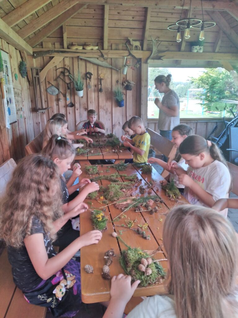 Uczniowie naszej szkoły mieli niedawno okazję uczestniczyć w wyjątkowych warsztatach w gospodarstwie agroturystycznym „Agrojeziorak” w Łapalicach. Dzięki serdecznej gościnności Pani Kamili Głodowskiej dzieci mogły rozwijać swoją kreatywność, wykonując niezwykłe miniatury kaszubskiej przyrody na fragmentach kory sosnowej i brzozowej.