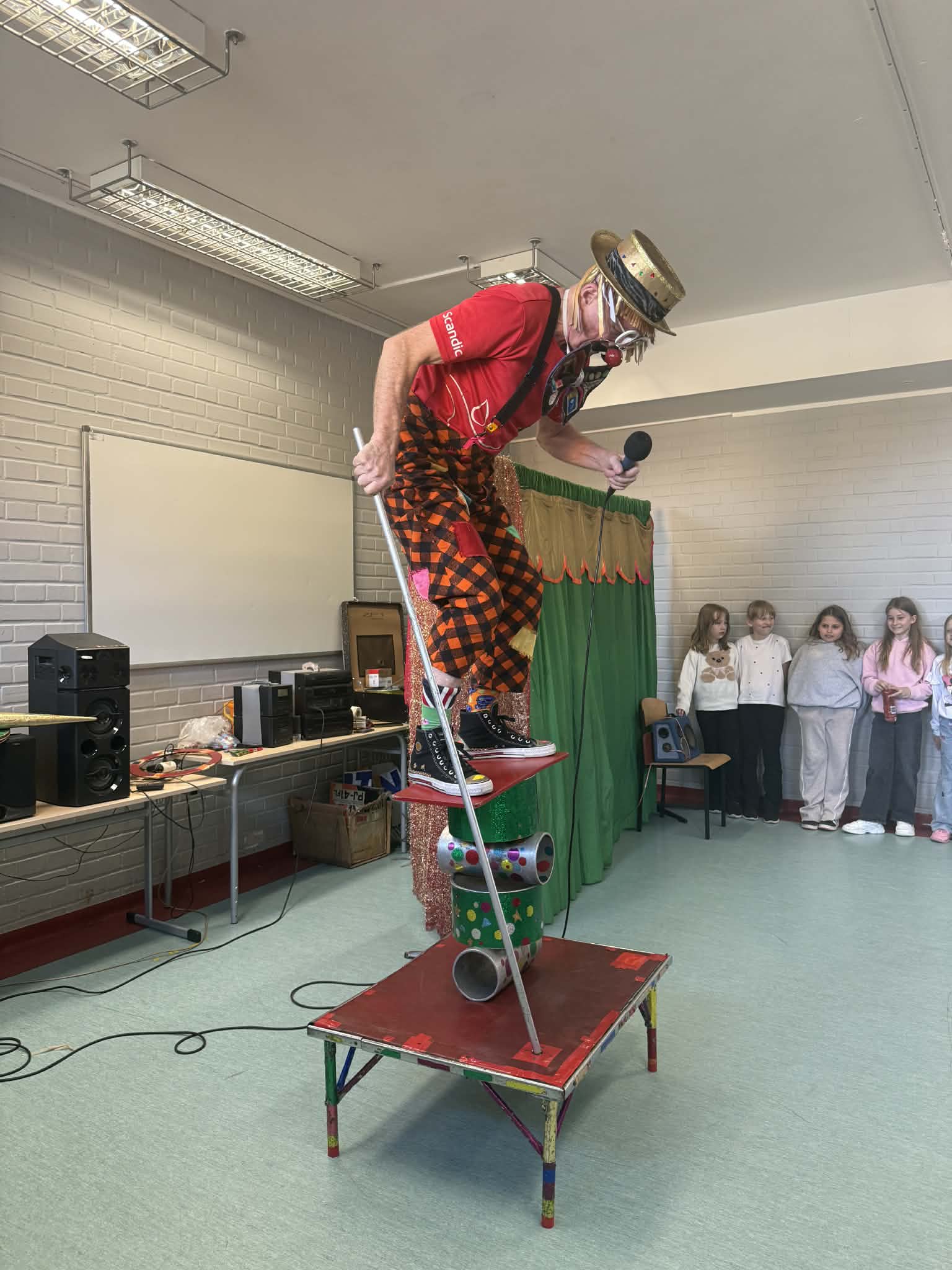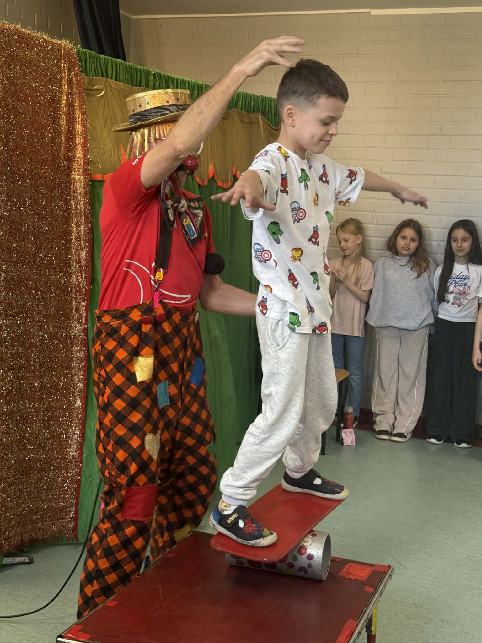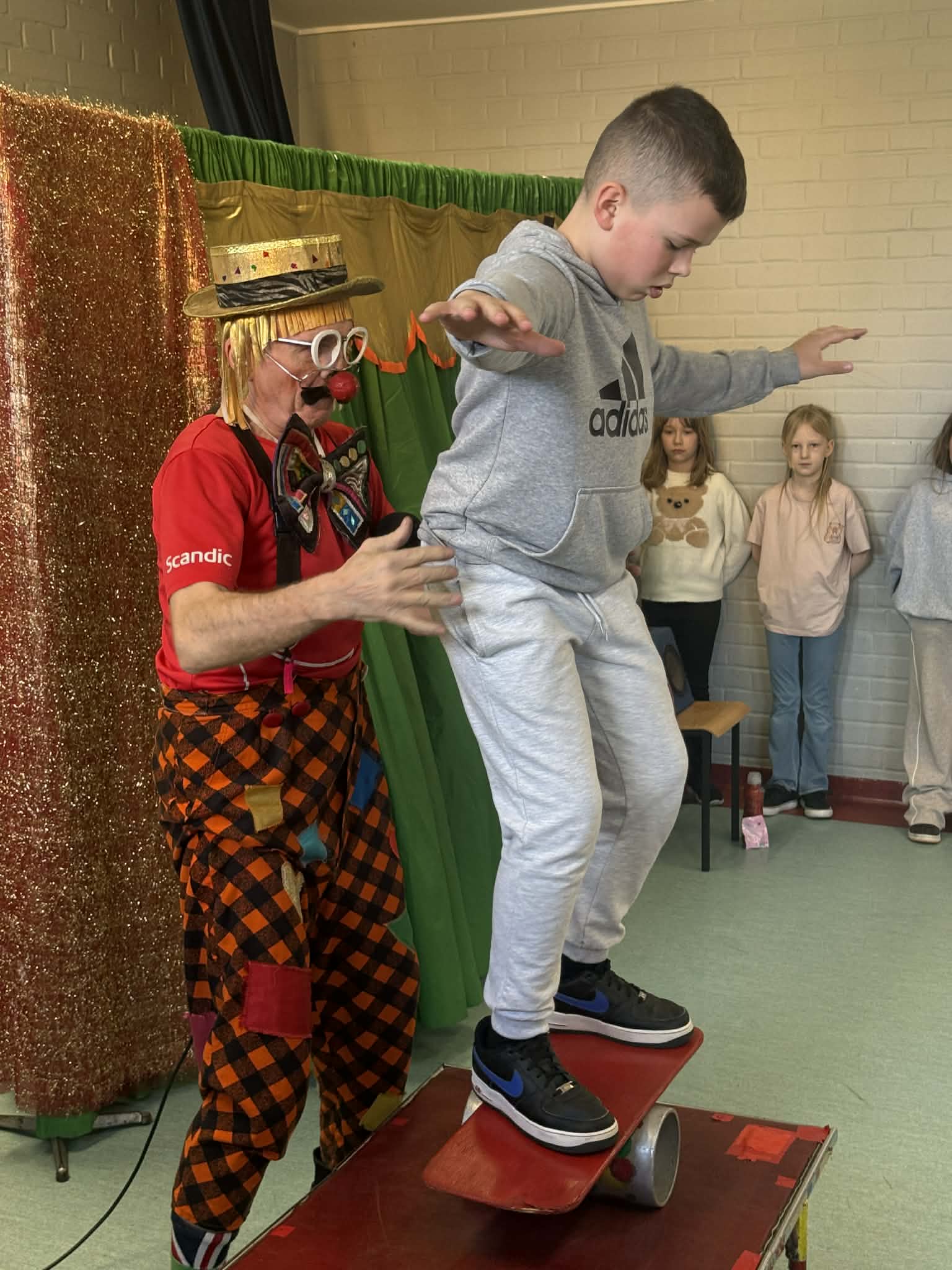 Dziś naszą szkołę odwiedził wyjątkowy gość - wesoły klaun, który od razu wprowadził wszystkich w radosny nastrój! Przygotował dla uczniów niezwykłe pokazy pełne humoru, zręczności i niespodzianek. Jednym z najbardziej emocjonujących momentów był pokaz balansowania, który wzbudził ogromne zainteresowanie i podziw.