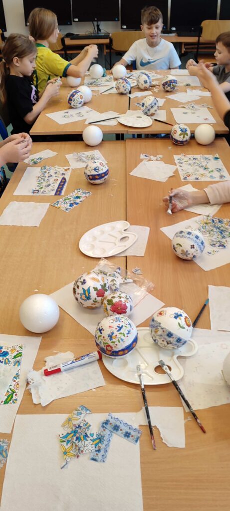 W naszej szkole odbyły się wyjątkowe warsztaty decoupage dla uczniów uczęszczających na zajęcia z języka kaszubskiego. Podczas zajęć uczniowie mieli okazję poznać technikę zdobienia oraz samodzielnie wykonać bożonarodzeniowe bombki na choinkę z motywami kaszubskimi.